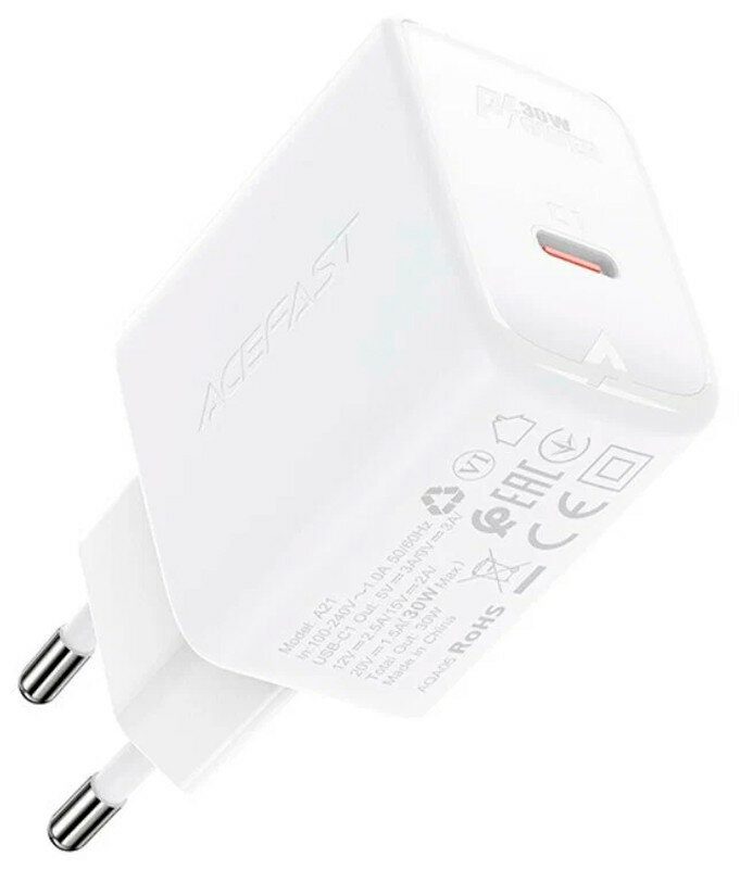 Сетевое зарядное устройство ACEFAST A21 PD30W GAN, USB-C, Белый информация: