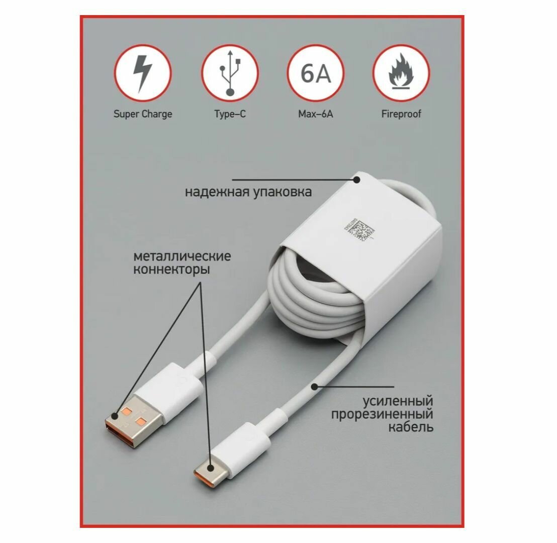 Кабель USB Type-C 6А (быстрая зарядка) для Xiaomi, Samsung, Huawei и др. информация: