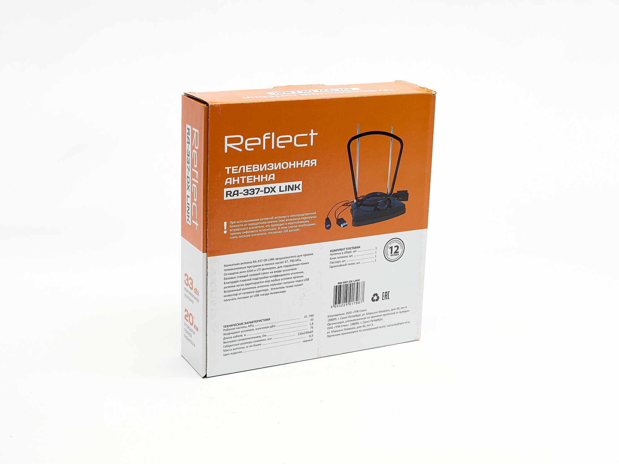 REFLECT LINK RA-337-DX (активная, МВ-ДМВ, с б/п, 33 дБи, коробка) информация: