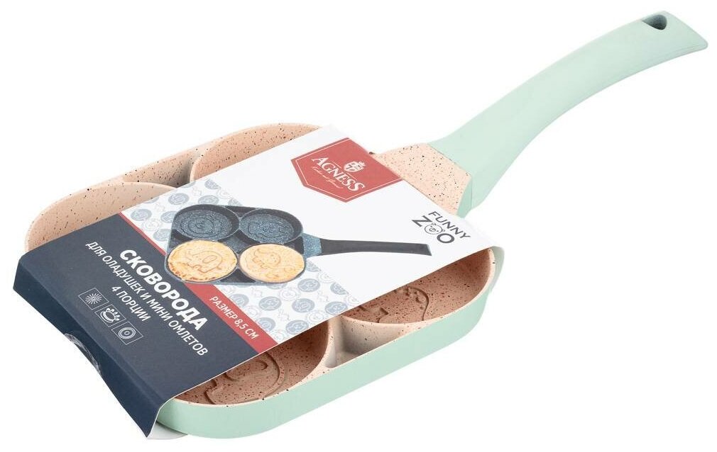 Сковорода блинная Agness "Смайл", для оладий, с антипригарным мраморным покрытием, диаметр 26.5 см, индукционное дно