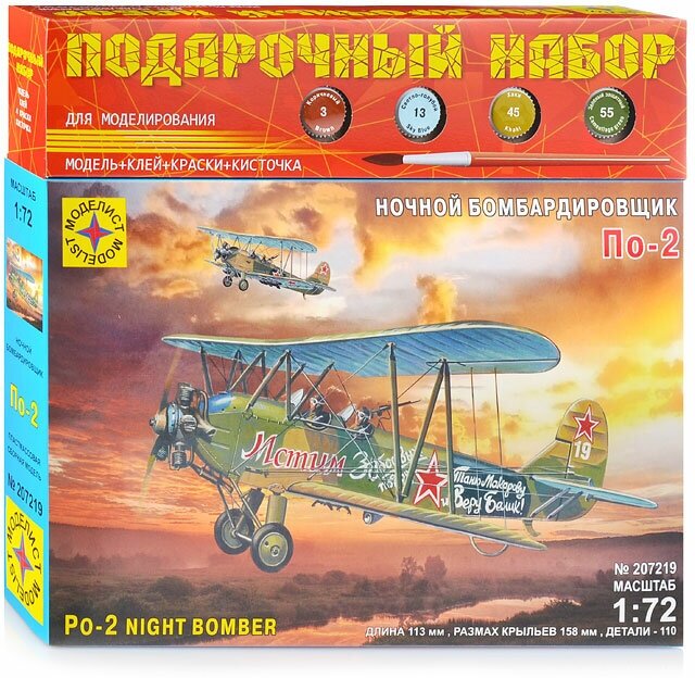 Моделист Сборная модель Подарочный набор Ночной Бомбардировщик По-2 (1:72) информация: