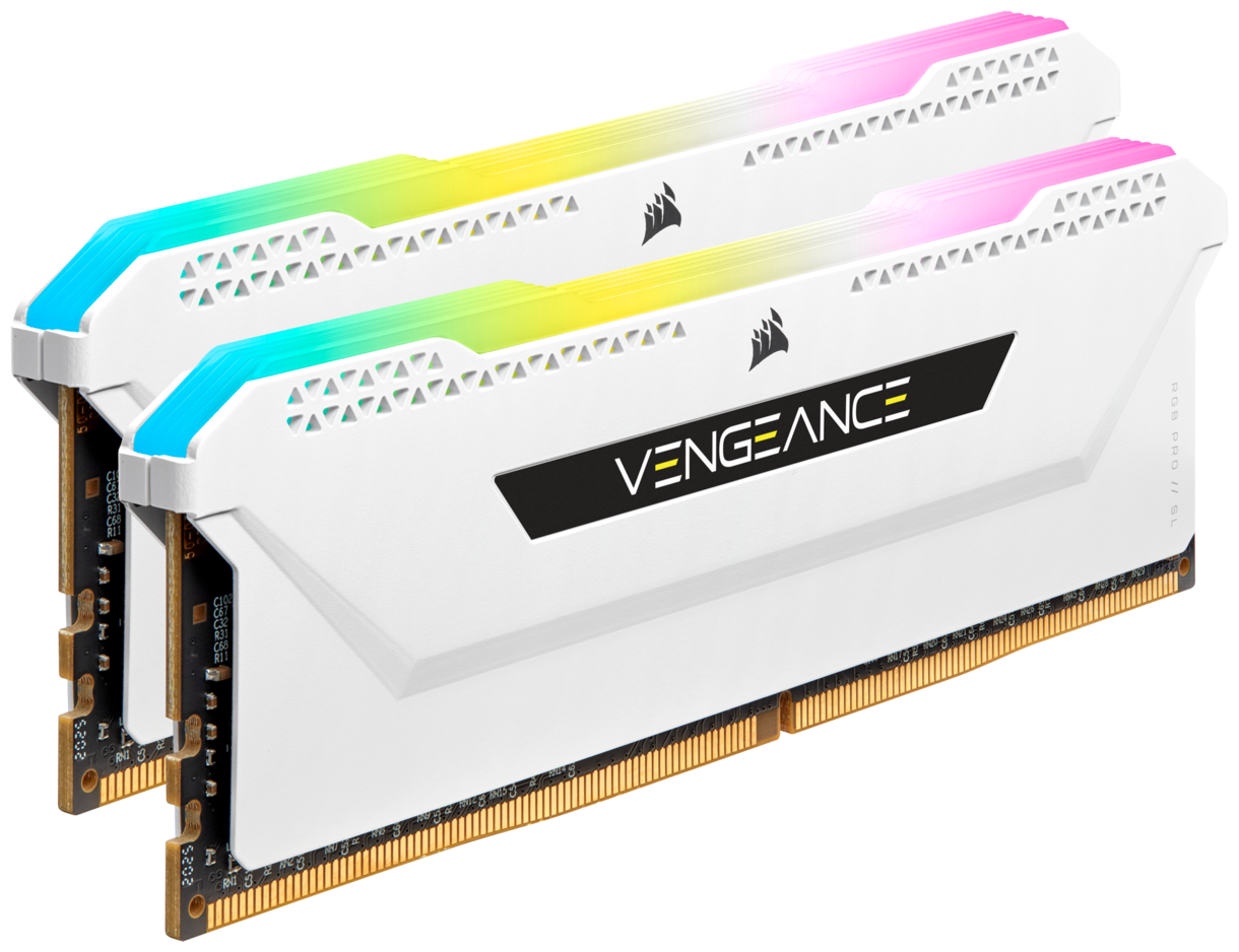Corsair Vengeance RGB Pro SL White Heatspreader, DDR4 Dimm, CMH32GX4M2E3200C16W 3200MHz 32GB 2x16GB Unbuffered, 16-20-20-38, XMP 2.0, RGB LED, Black PCB, 1.35V, for AMD Ryzen & Intel