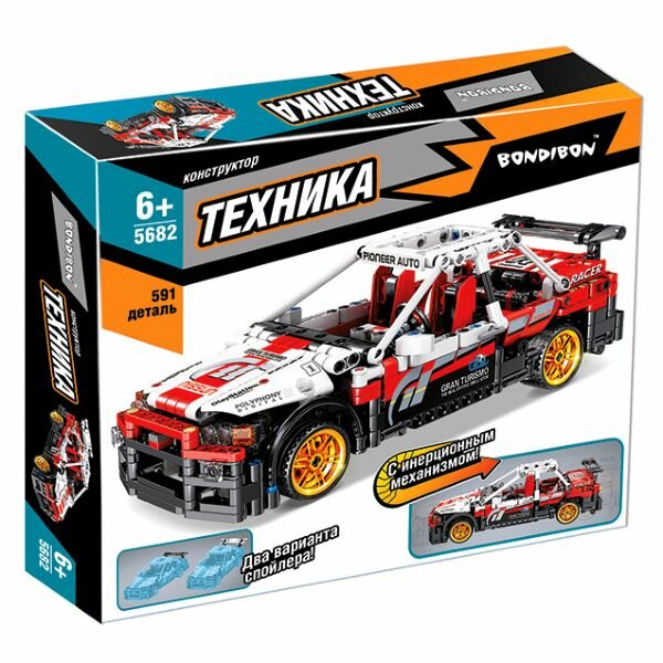 Конструктор Bondibon, техника, Гоночная машина, инерц., бело-красная, 591 дет., BOX информация: