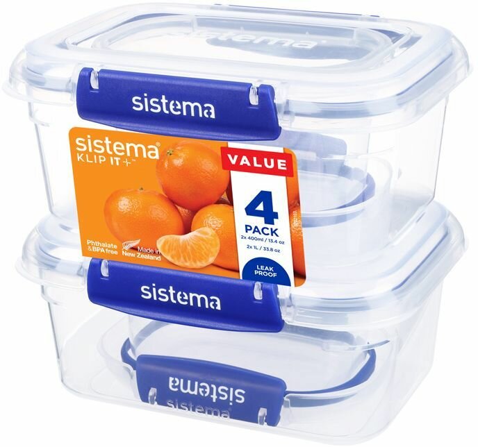 Отзывы на Набор контейнеров SISTEMA Klip it plus 881714, 1л, прямоугольная, пластик, синий/прозрачный, 4шт