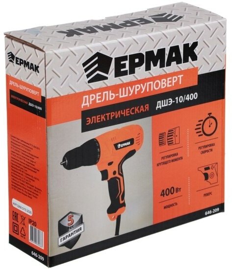 Электрическая дрель-шуруповерт ермак ДШЭ-10/400 646-209