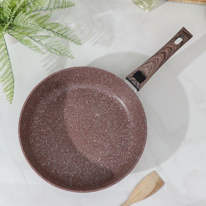 Сковорода "Брауни", d=28 см, съёмная ручка, стеклянная крышка, индукция, антипригарное покрытие, цвет коричневый информация: