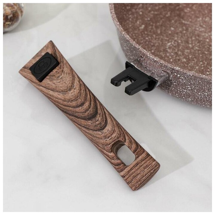 Сковорода Доляна «Брауни», d=24 см, антипригарное покрытие, съёмная ручка, индукция, цвет коричневый