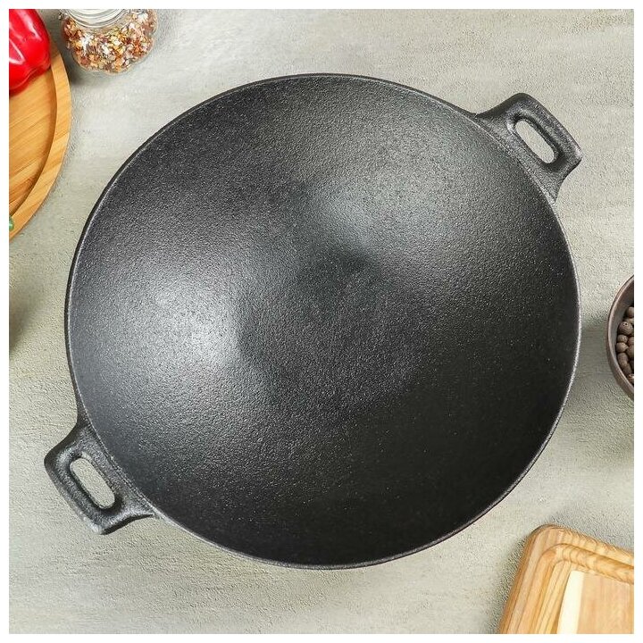 Сковорода-Wok чугунная Доляна «Восток», d=30 см, стеклянная крышка информация: