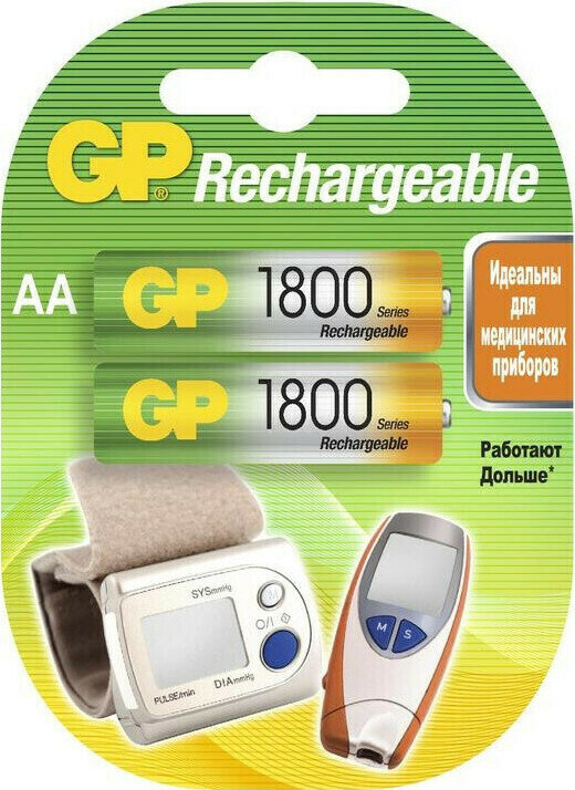 Батарейка Аккумулятор GP 1800mAh АА/LR6 NiMh блок/2шт. информация: