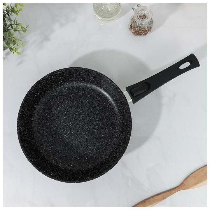 Сковорода Доляна "Элит", d:22 см, антипригарное покрытие, пластиковая ручка, цвет чёрный