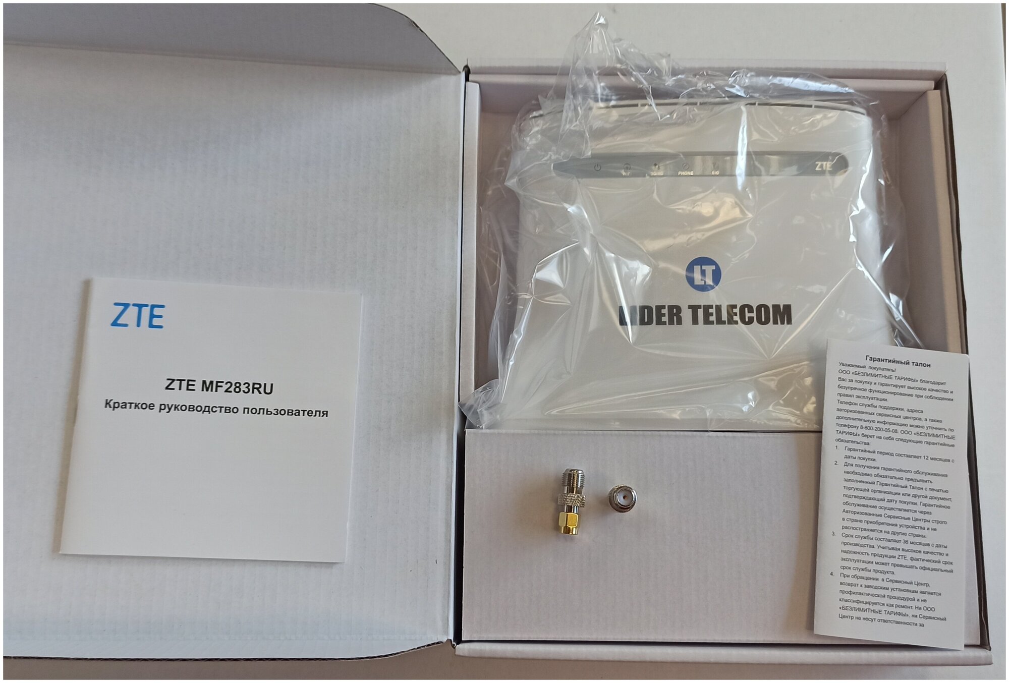 Комплект 3G/4G: роутер ZTE MF283RU с антенной 2*15 дБ Mimo и кабелем информация: