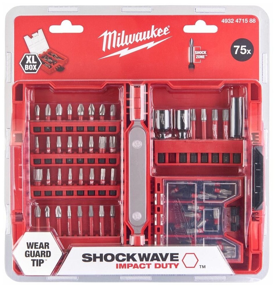 Набор бит Milwaukee 4932471588, 75 предм., красный информация:
