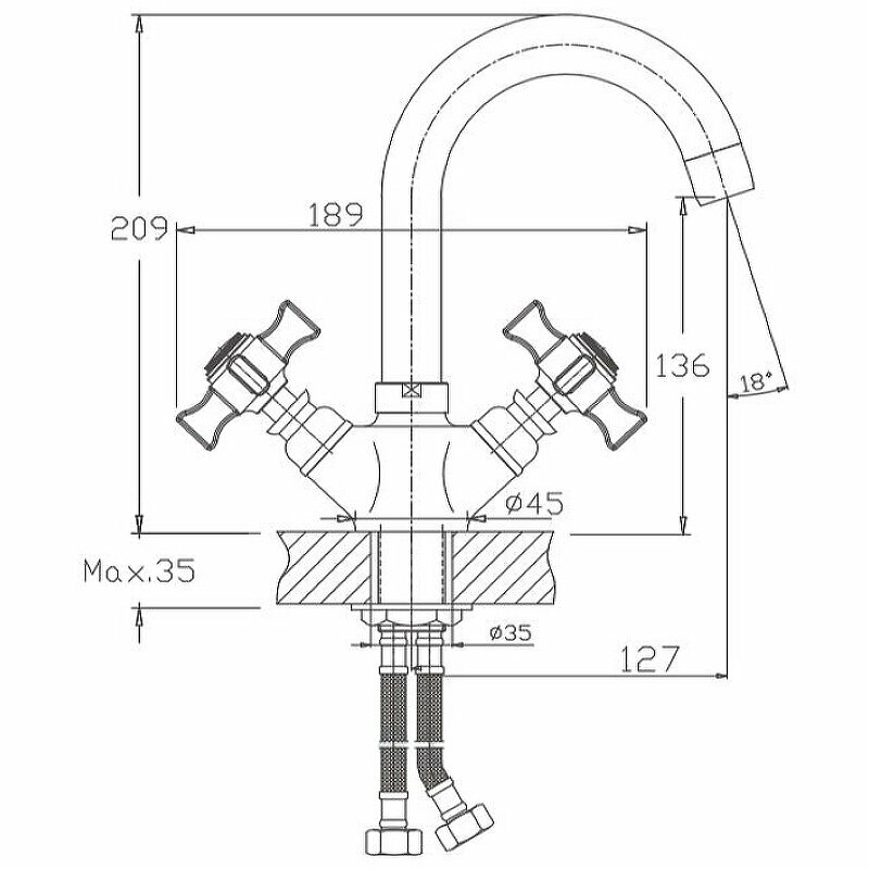 4524HB Смеситель Кухня HAIBA 1/2 м/к крест толстый нос с гайкой хром