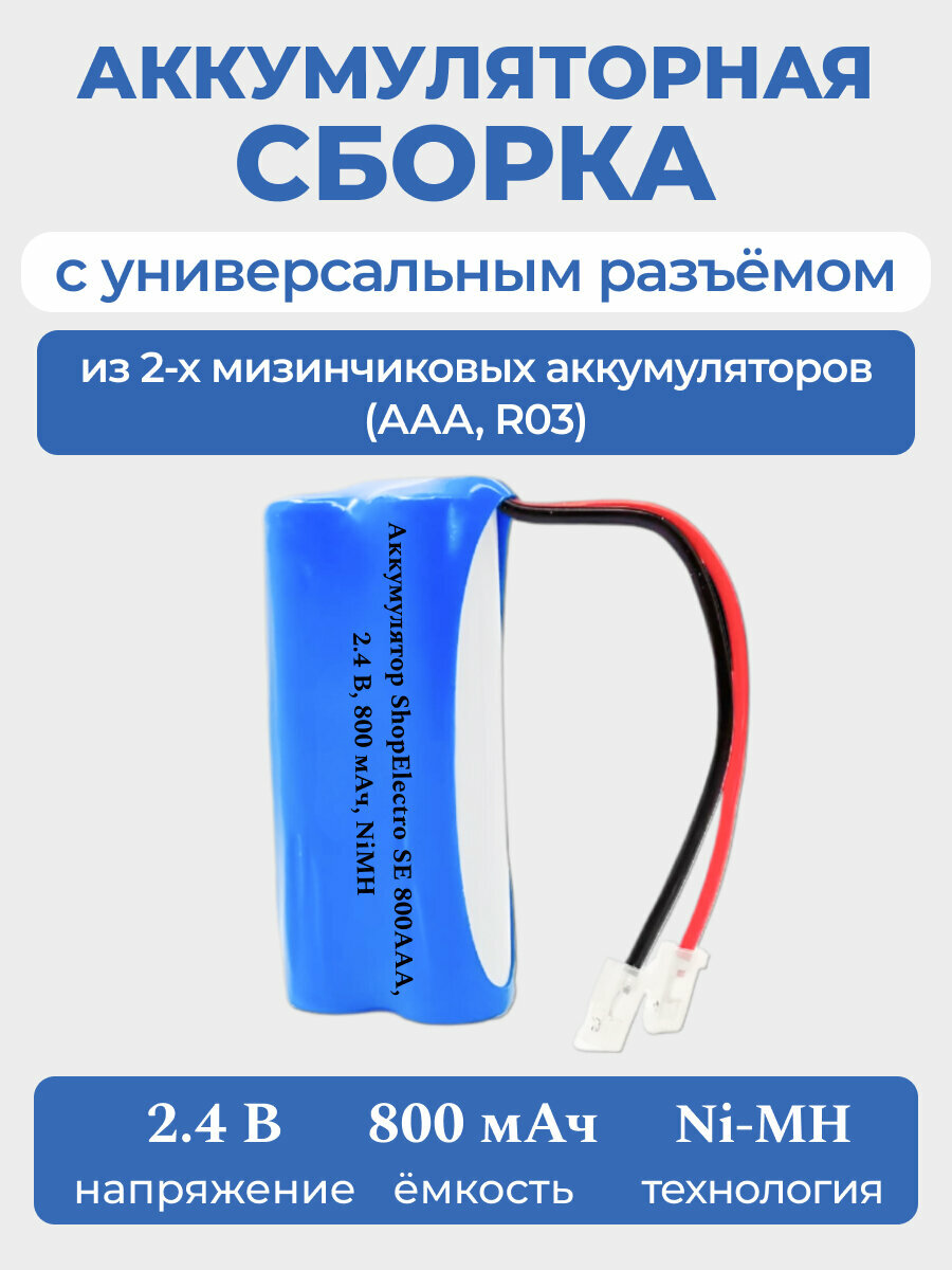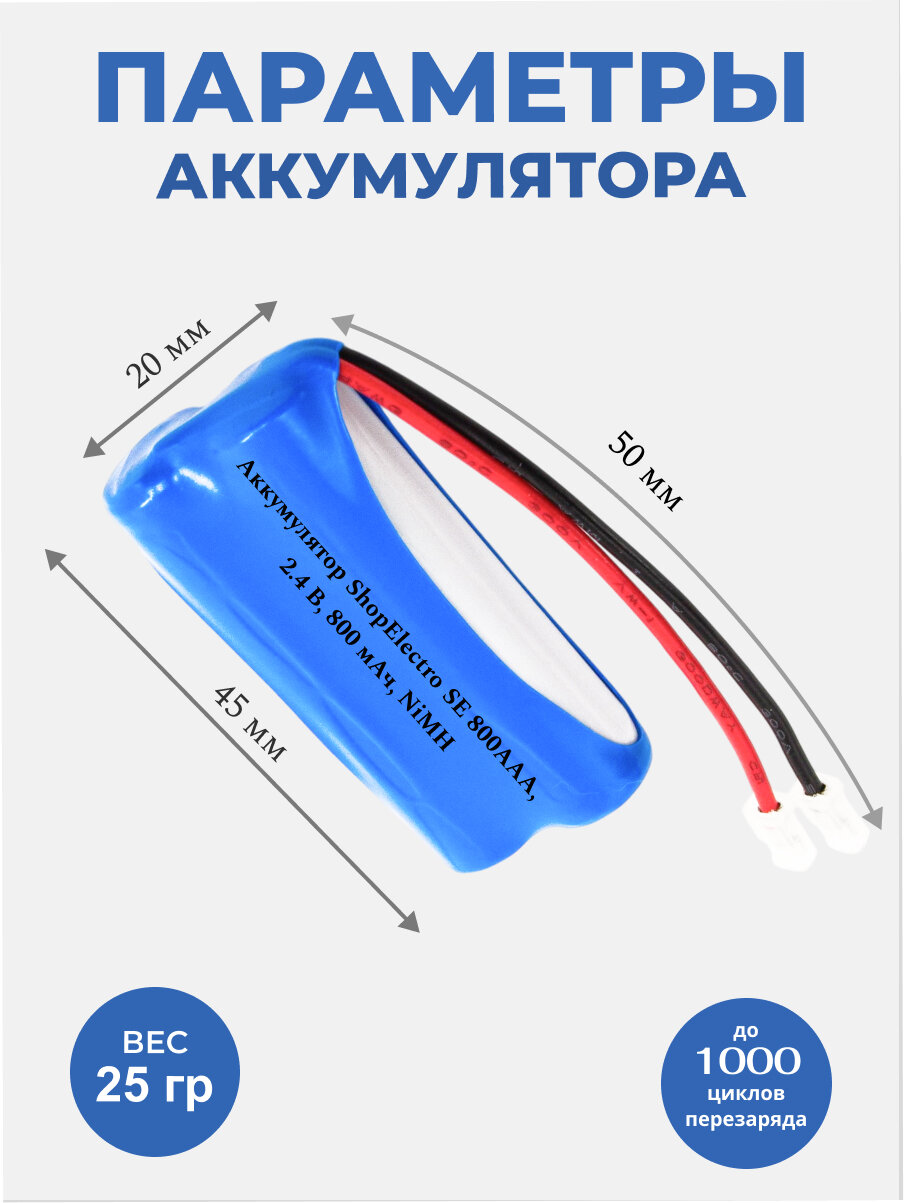 Аккумулятор ShopElectro SE 800ААА, 2.4 В, 800 мАч/ 2.4 V, 800 mAh, NiMH, с универсальным разъёмом информация: