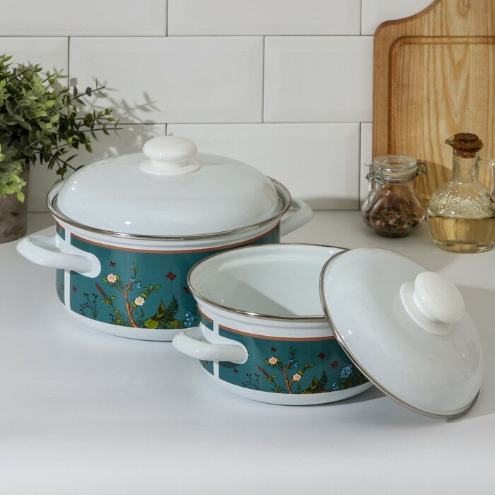10 цен на Доляна Набор кастрюль Доляна Garden, 2 предмета: 1,5 л, 3 л, индукция, цвет белый