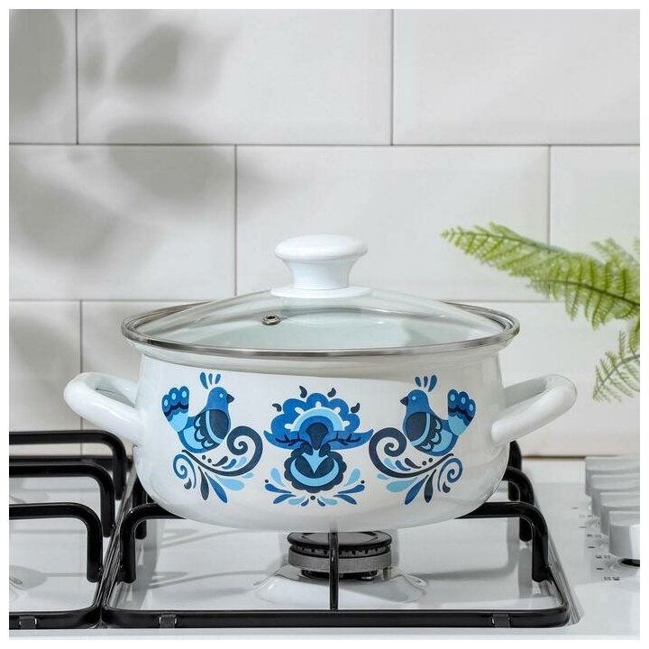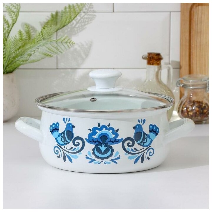 Кастрюля "Свиристель", 2 л, стеклянная крышка, индукция, цвет белый 1 822 ₽