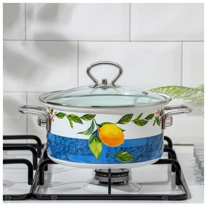 10 цен на Доляна Кастрюля Доляна «Лимоны», 2,5 л, стеклянная крышка, индукция, цвет белый