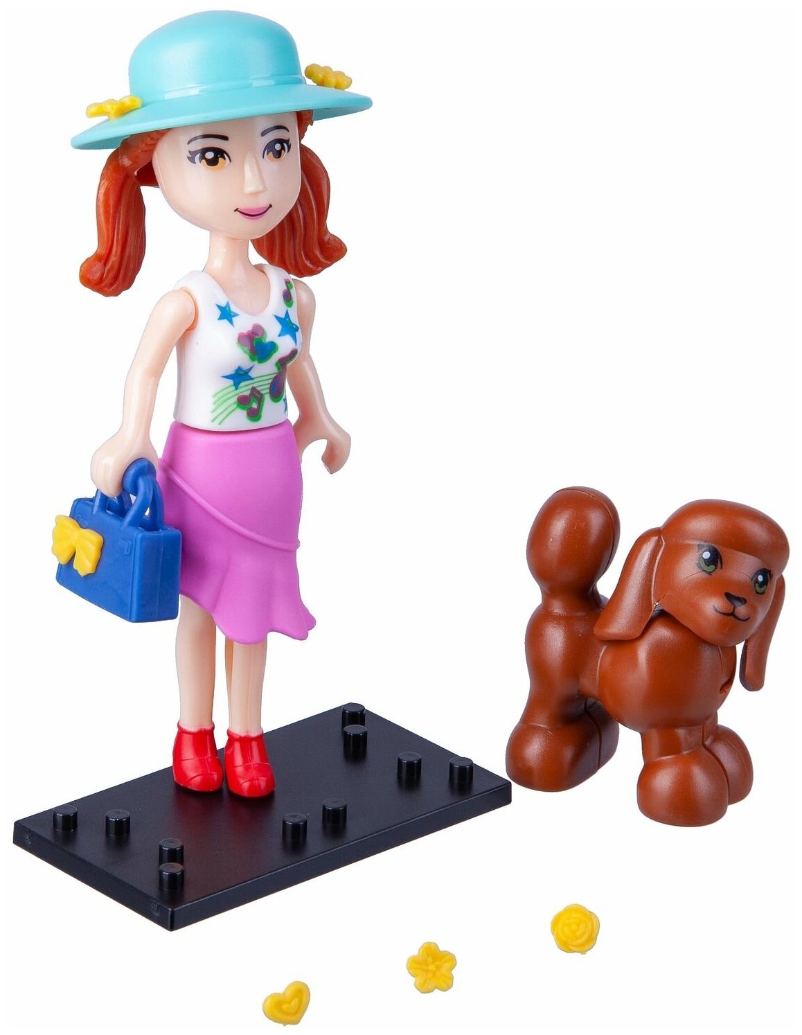 | Комплектация | куколка, чемодан, подставка, собачка, сумочка, аксессуары-цветочки для шляпки |