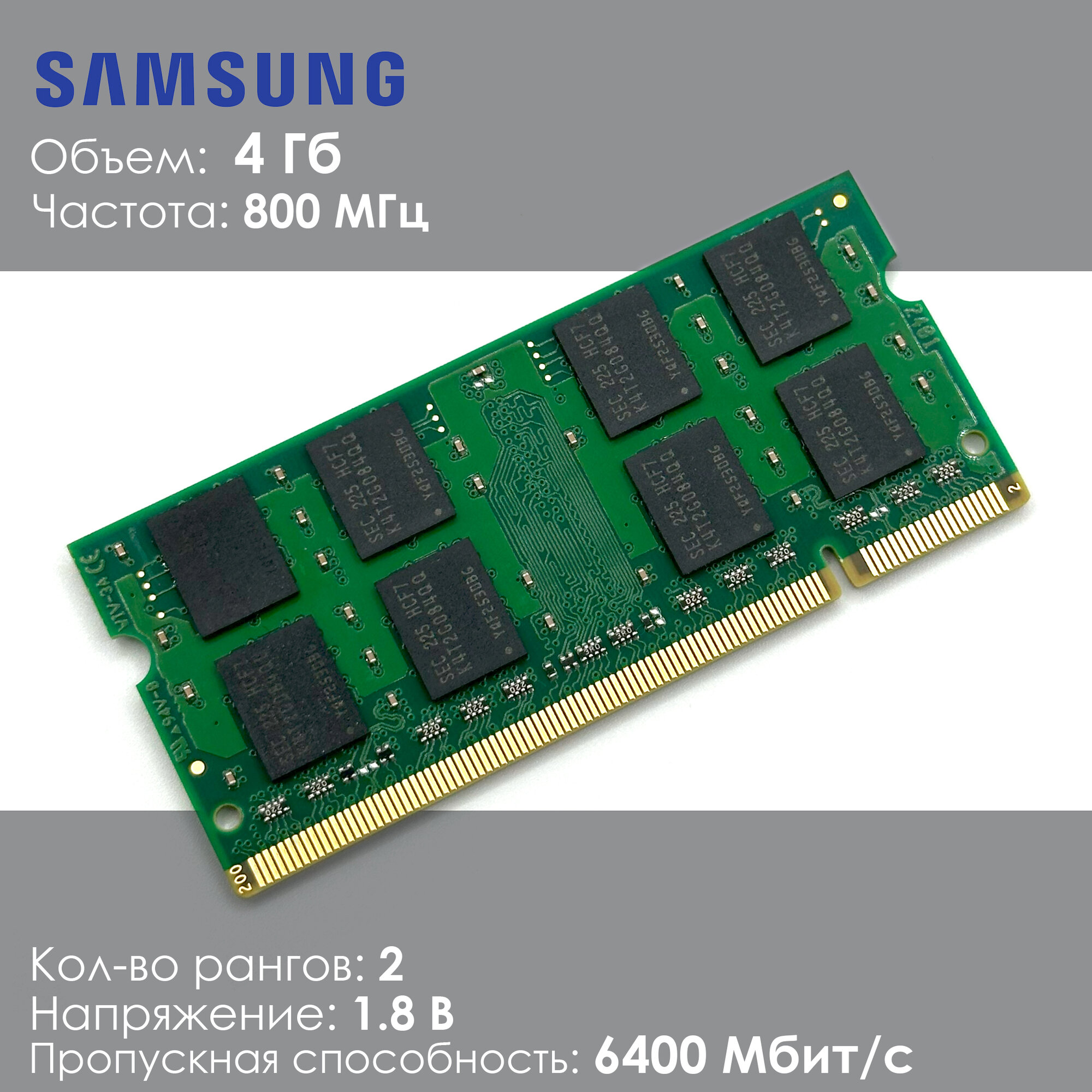 Оперативная память DDR2 4Gb 800 Mhz Samsung M470T5267AZ3-CF7 PC2-6400 So-Dimm для ноутбука информация: