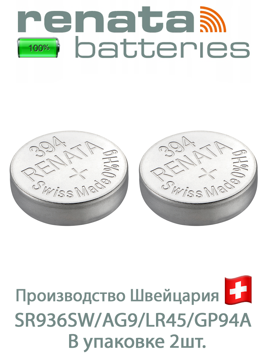 Батарейка Renata 394 Швейцария, упаковка 2 шт.