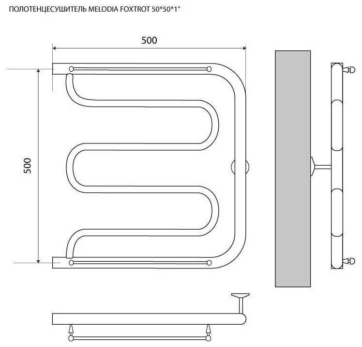 Полотенцесушитель водяной изнержавеющей стали с полочкой Foxtrot 500*500мм 1" Melodia della Vita информация: