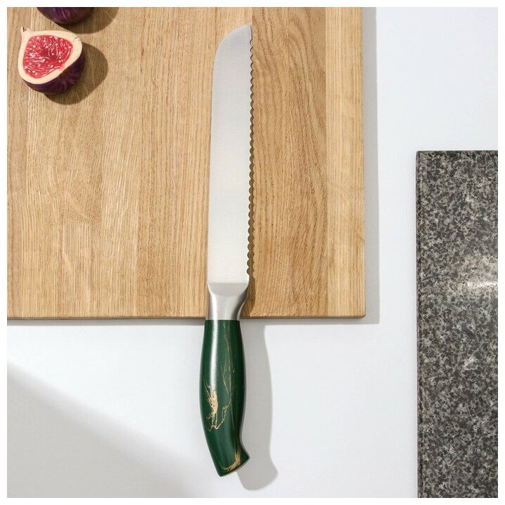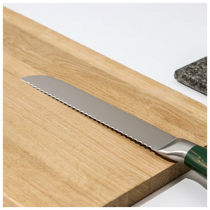 10 цен на Нож кухонный Доляна Zeus, хлебный, 20 см, цвет изумрудный