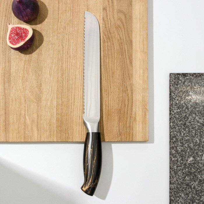 10 цен на Нож кухонный Доляна Zeus, хлебный, 20 см, цвет чёрный