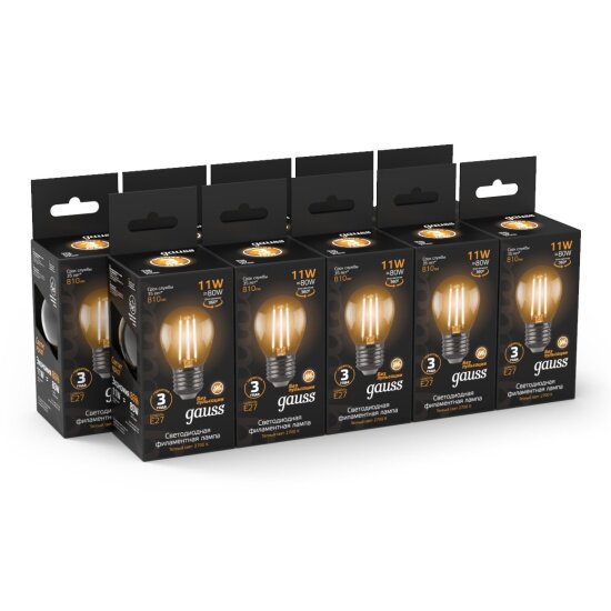 Лампа филаментная GAUSS E27, шар, 11Вт, одна шт. [105802111]