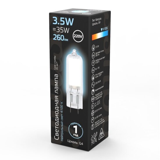 Светодиодная лампа Gauss LED G4 AC220-240V 3.5W 260lm 4100K Glass информация: