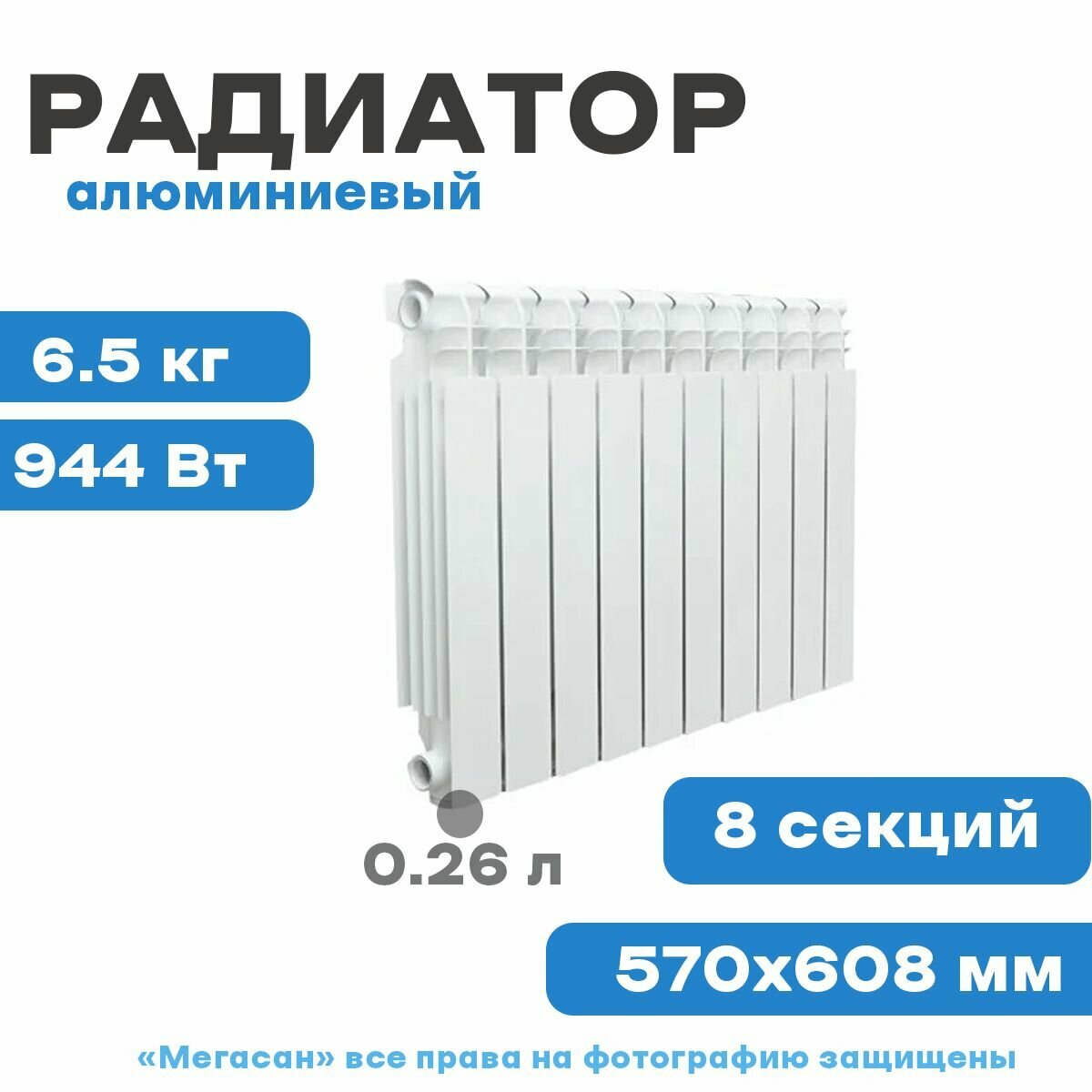 Радиатор отопления Firenze AL 350/80 A52 8 секции (синий кв.)