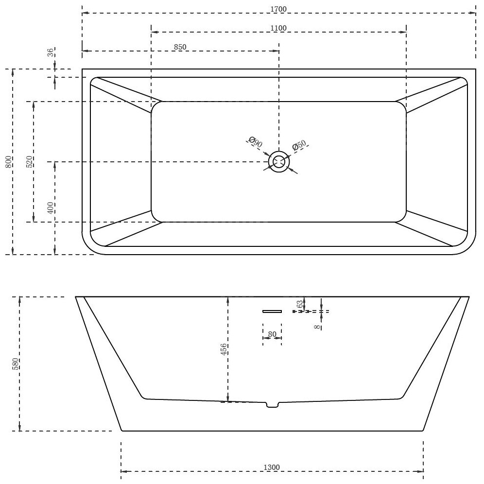 Ванна отдельностоящая AB9212-1.7 170х80 акрил левосторонняя/правосторонняя информация: