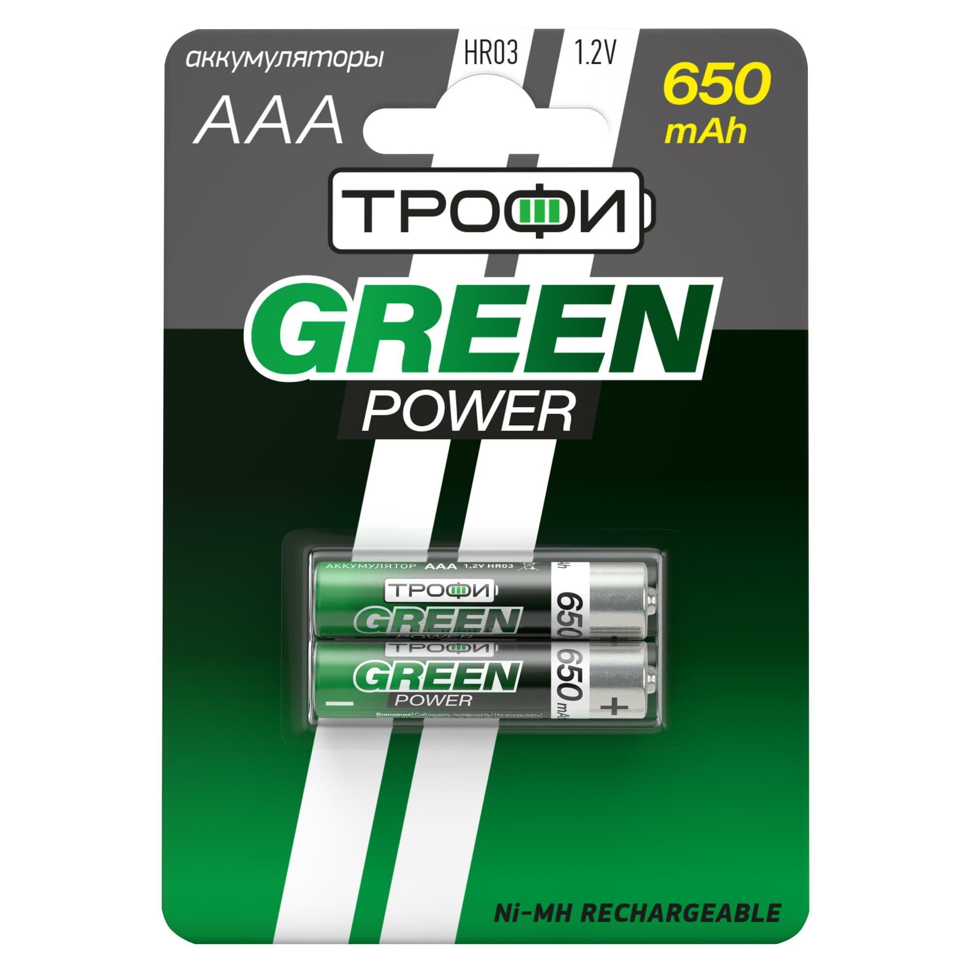 Аккумуляторы NiMH (никель-металлгидридные) Трофи HR03-2BL 650 mAh GREEN POWER (20/240/17280) информация: