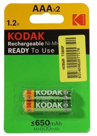 Отзывы на Аккумулятор Kodak, Ni-Mh, Aaa, Hr03-2bl, 1.2В, 650 мАч, блистер, 2 шт. Kodak 1804446