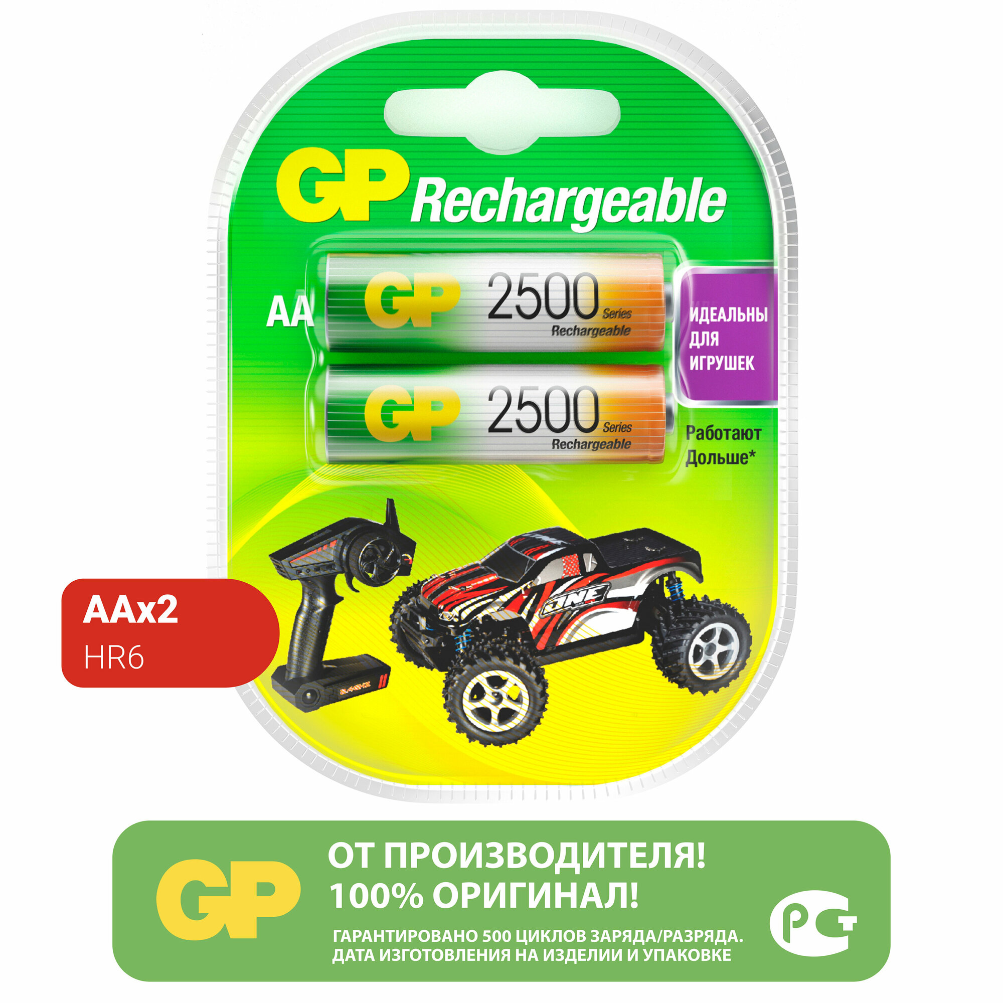 Аккумуляторы "AA" GP 250AAHC-2 (NiMH, 1.2V, 2500mAh), упаковка 2шт. информация: