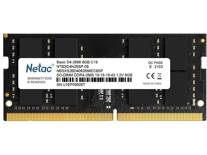 Модуль памяти Netac DDR4 SO-DIMM PC21300 2666Mhz CL19 - 8Gb NTBSD4N26SP-08 информация: