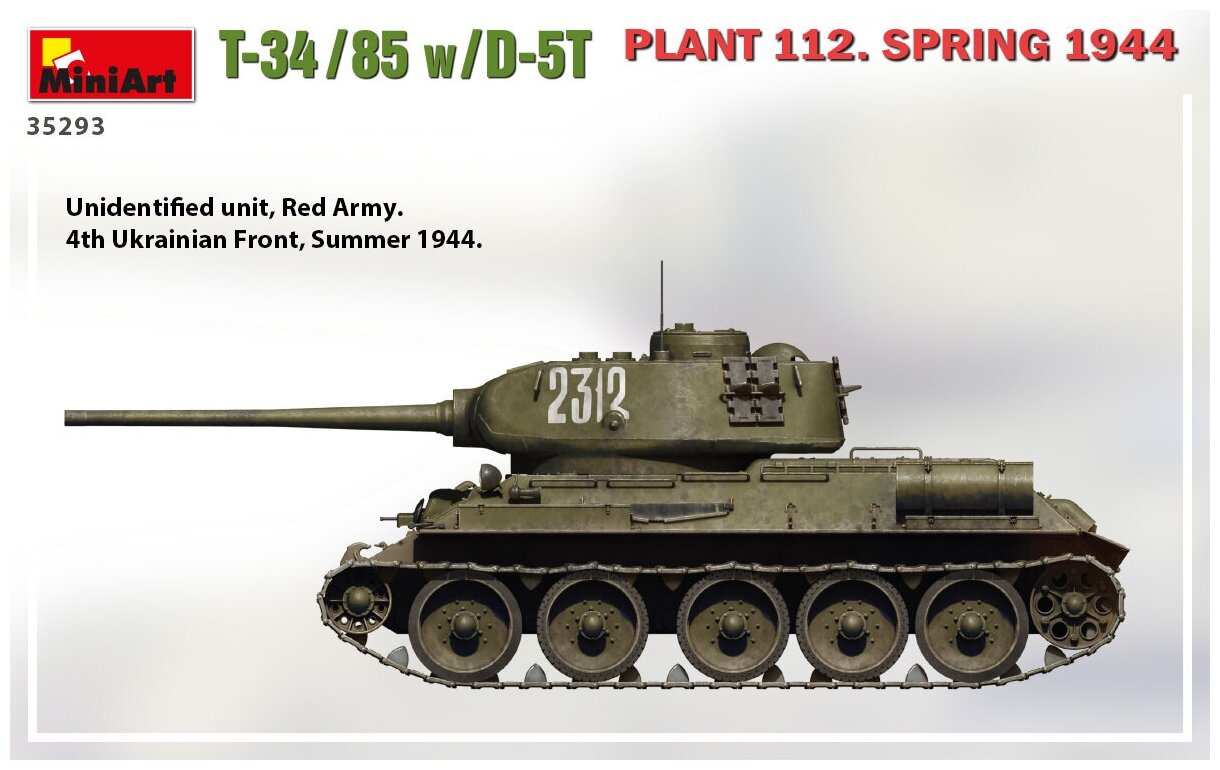 MiniArt Сборная модель Т-34/85 с Пушкой Д-5Т завод 112. Весна 1944, 1/35 информация: