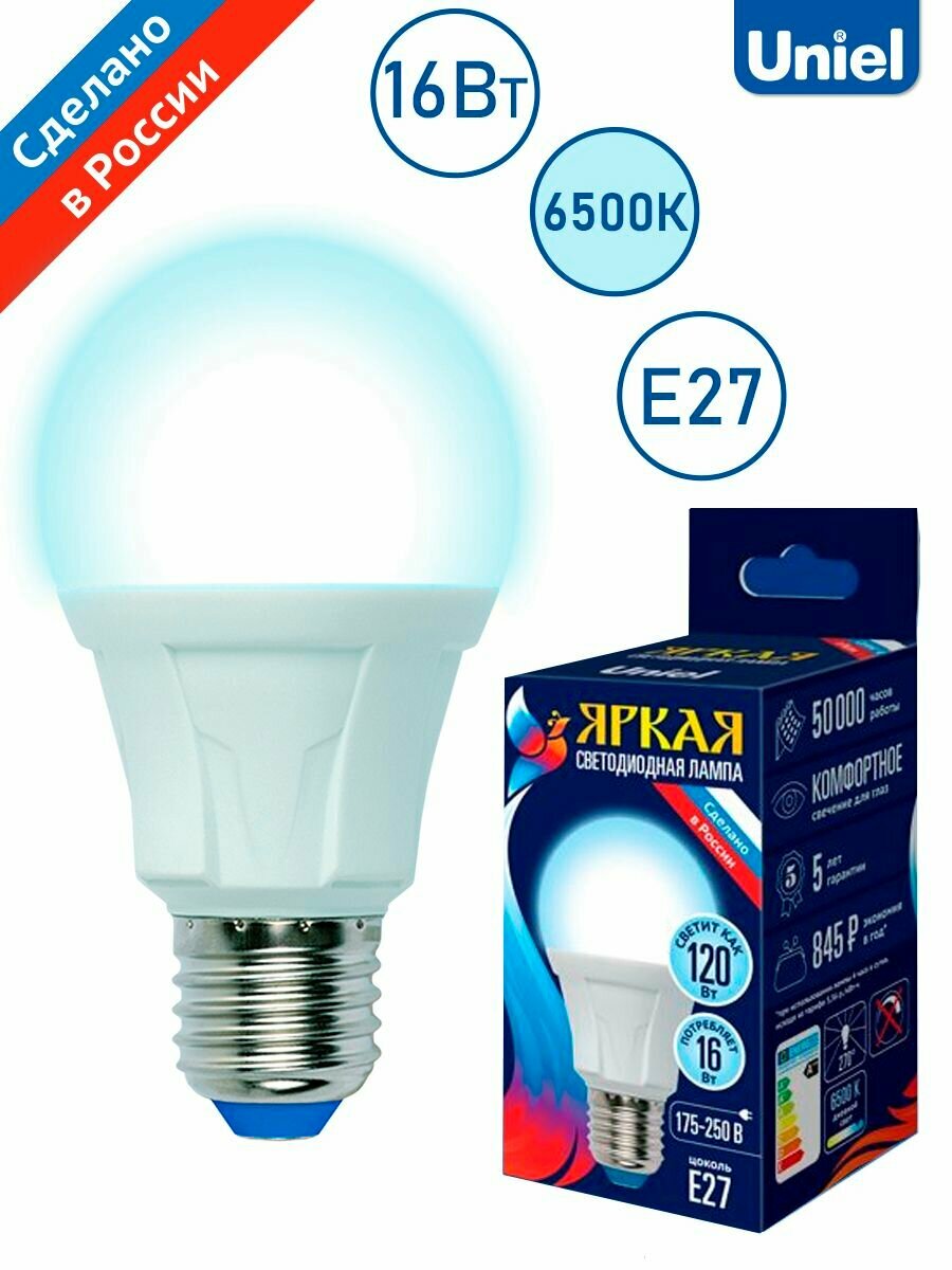 Лампа светодиодная груша Uniel LED-A60 E27 16W 6500K информация: