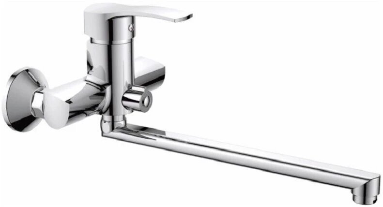 Смеситель на раковину настенный Эверест B46-350 с круглым поворотным изливом, кран-буксы 1/2", хром