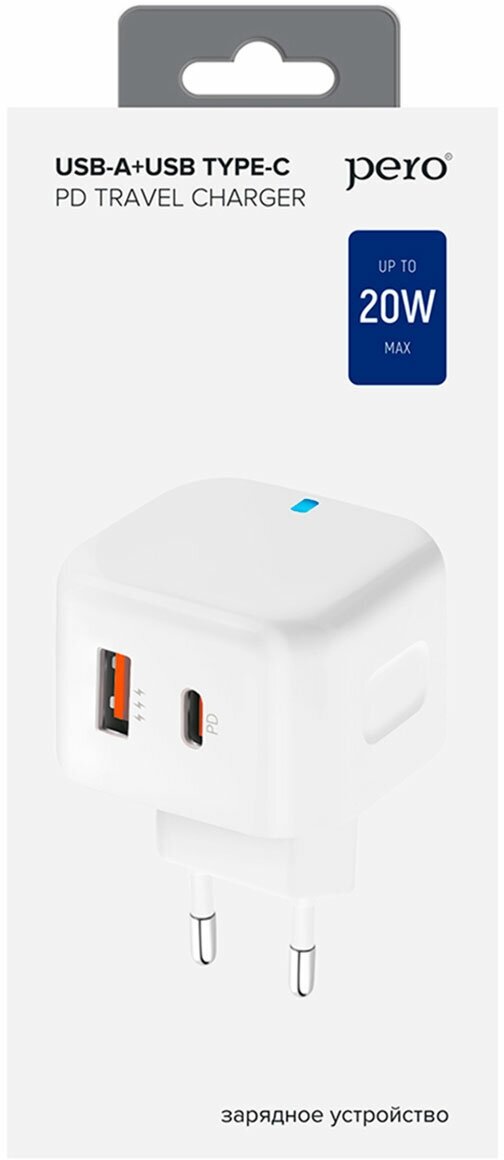 З/у сетевое PERO TC10 USB-C 20W + USB-A Fast Charge белый Pero 1598914 4603768351061