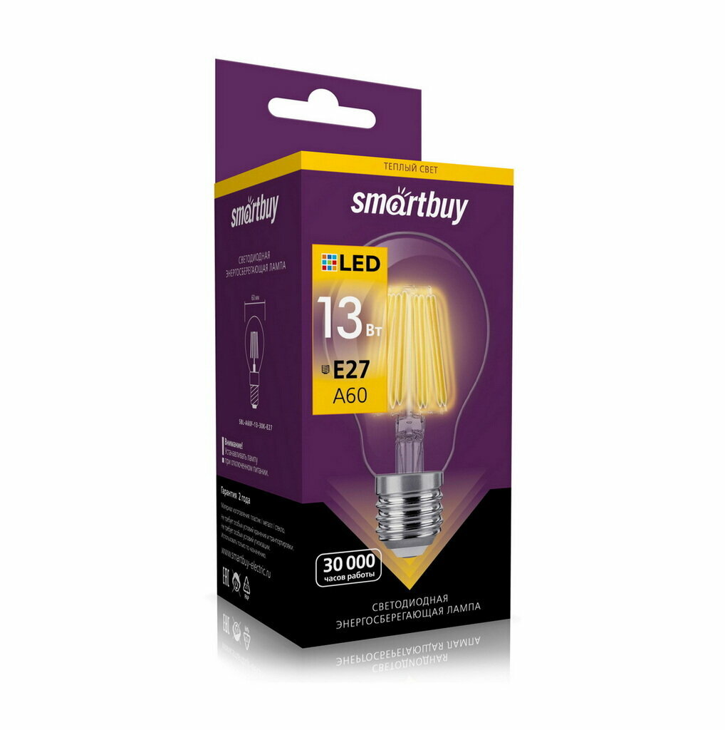Светодиодная Лампа FIL Smartbuy A60, 13Вт, 3000К, E27 информация: