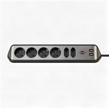 Удлинитель Brennenstuhl estilo corner extension угловой (2м, 6 роз, 2 USB 3.1А, серебристо-черный, 1153590610) информация: