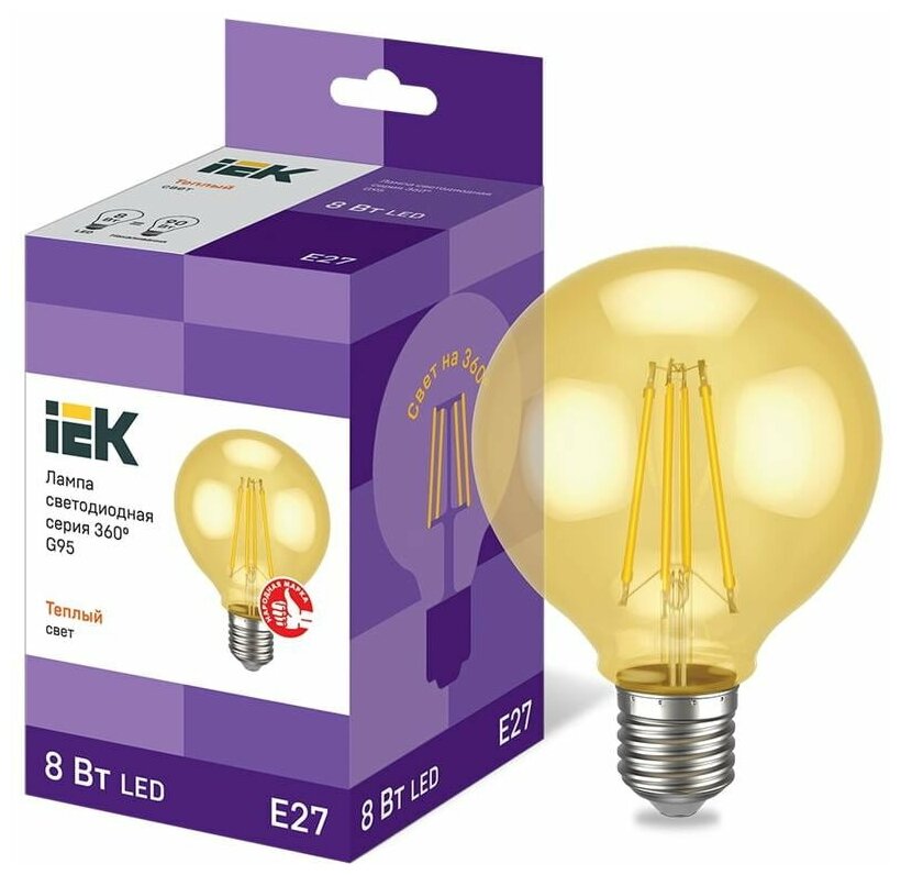 Отзывы на Лампа LED G95 золото 8Вт 230В 2700К E27 серия 360° IEK (1 шт.)