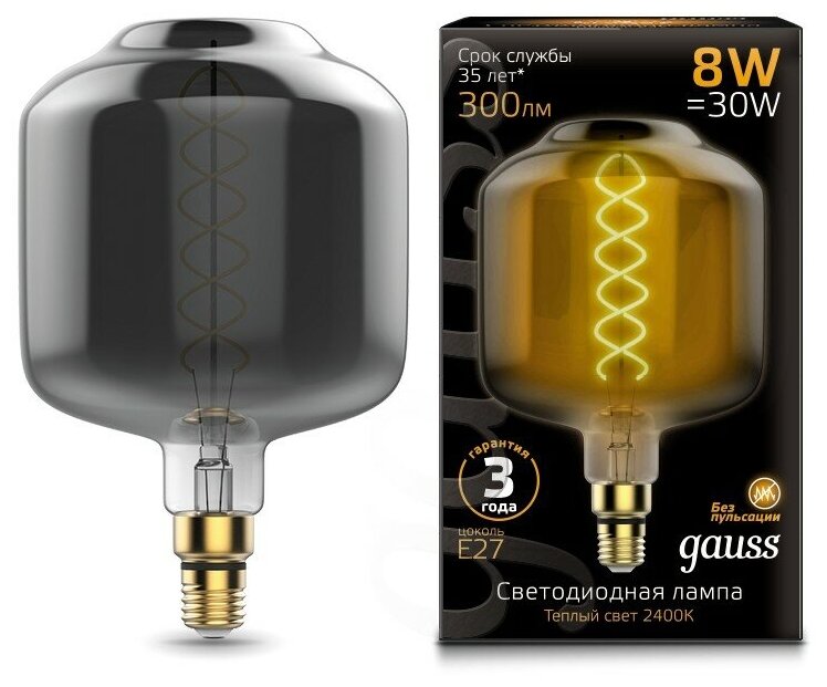 Отзывы на Светодиодная лампа GAUSS Led Vintage Filament Flexible DL180 8W E27 180*295mm Gray 2400K 1/6