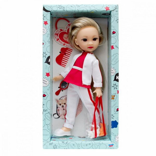 | Комплектация | - кукла в одежде; - зеркало; - расческа; - сердце; - собака в сумке; - заколка-крабик; - собака; - кошка. |