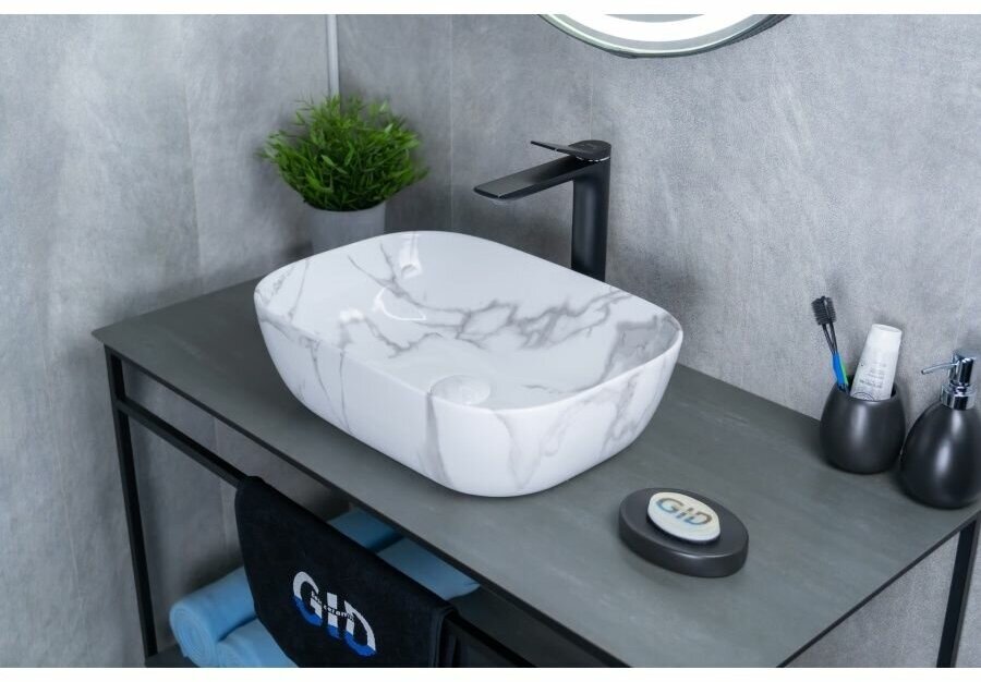 Раковина накладная GID Mnc333C 46 под мрамор/белая глянцевая 16 950 ₽