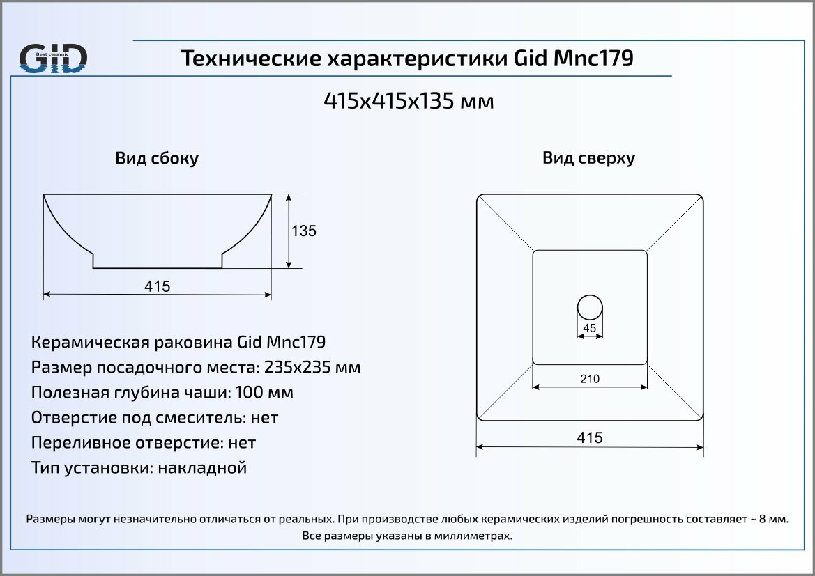 Раковина накладная (41,5х41,5) Gid Mnc179 7 458 ₽