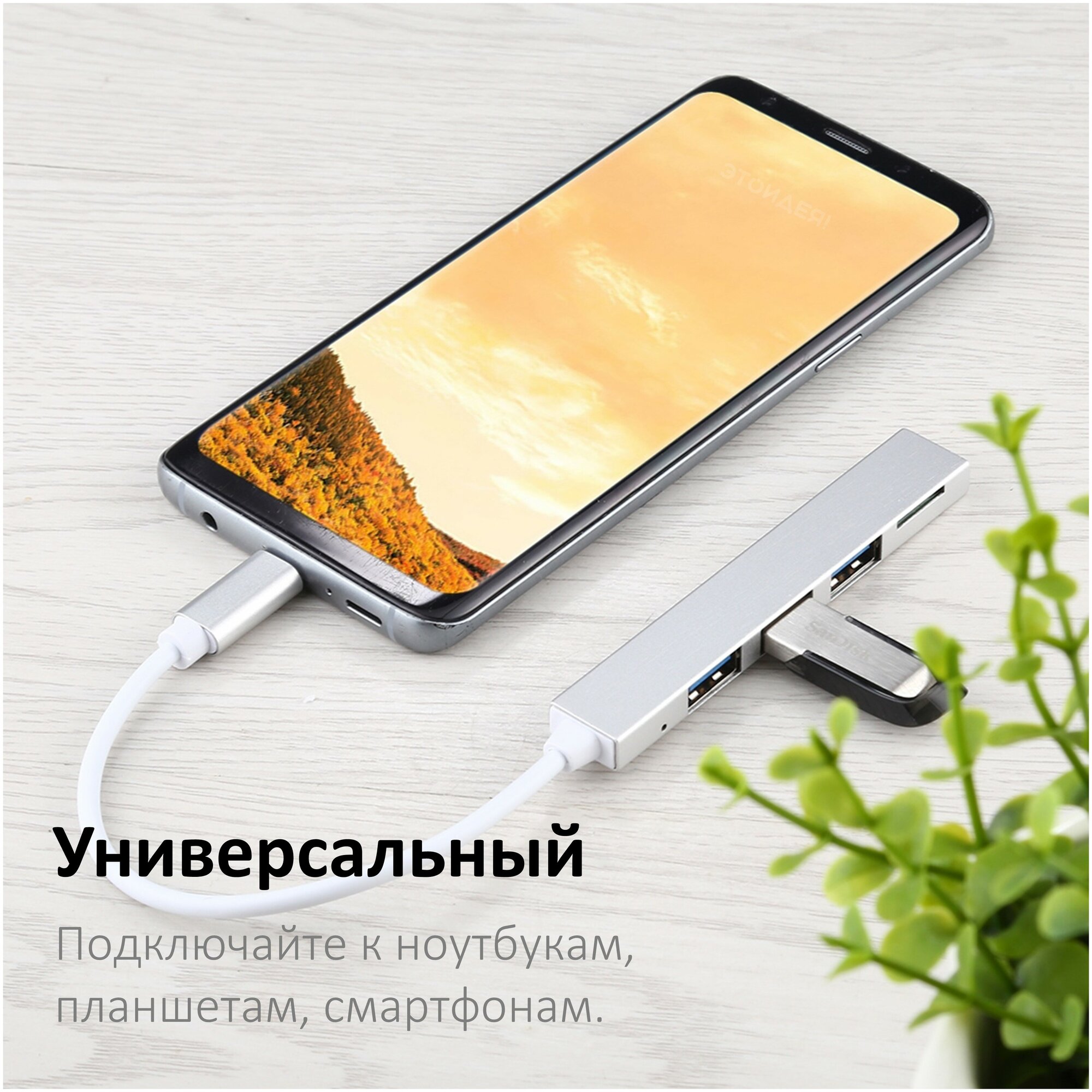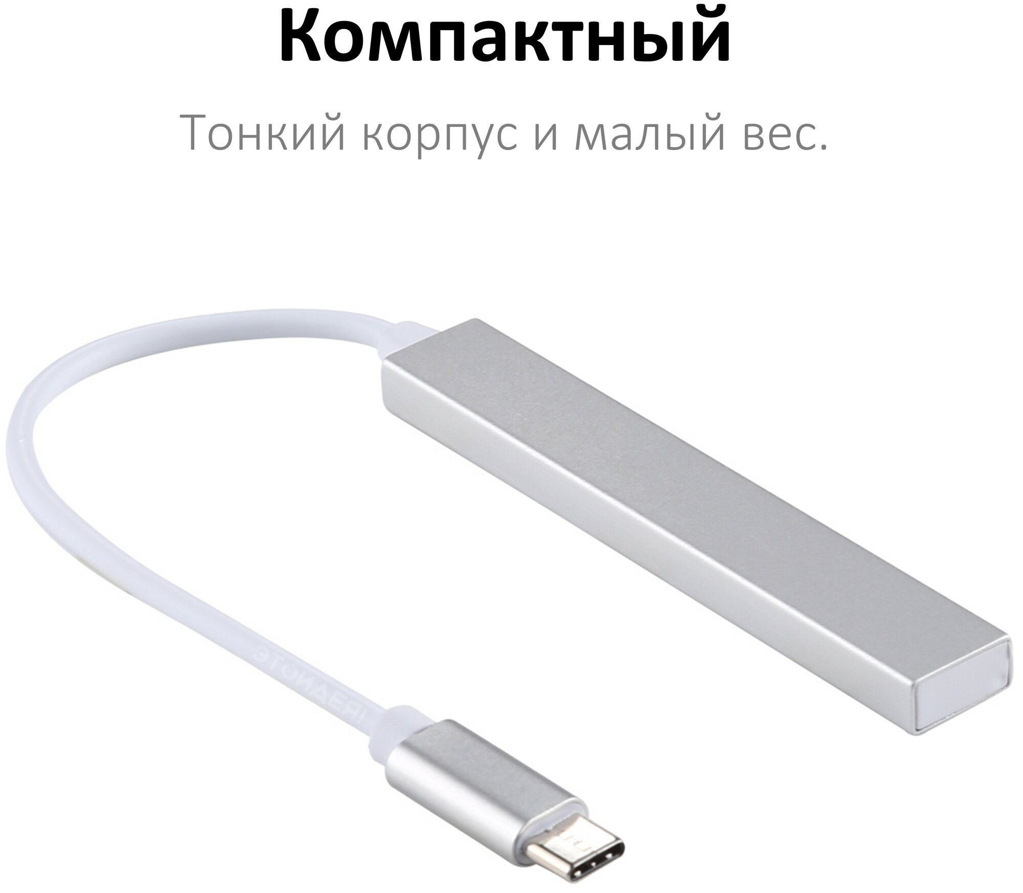 Отзывы на Хаб с кабелем Type-C на 3 порта USB 2.0 с кардридером для карт памяти microSD, алюминиевый, серебристый / для MacBook, ноутбука, компьютера / NOBUS