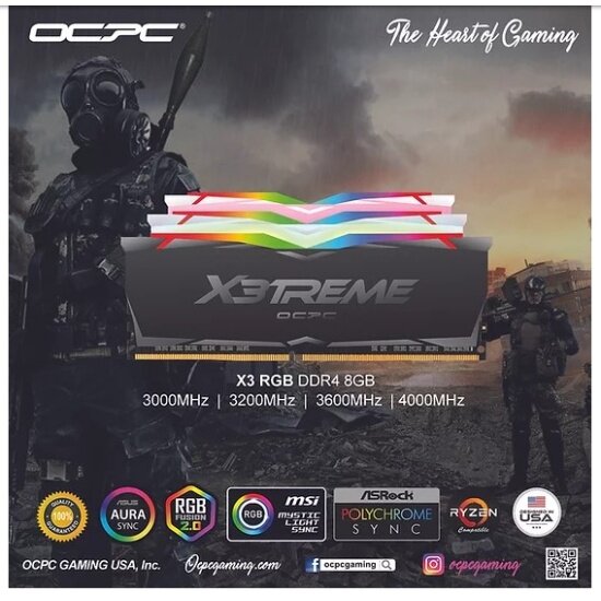 Оперативная память OCPC DDR4 X3 RGB 16Gb (8Gbx2) 3200Mhz CL16, RED (MMX3A2K16GD432C16RE) информация: