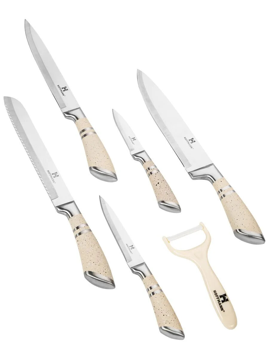 Набор ножей HOFFMANN с блоком для хранения, цвет: бежевый/стальной (НМ 6631)