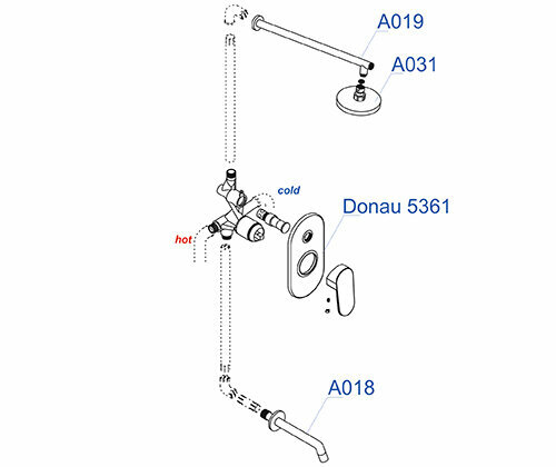 Встраиваемый комплект для ванны с изливом и верхней душевой насадкой Wasserkraft A13031 информация: